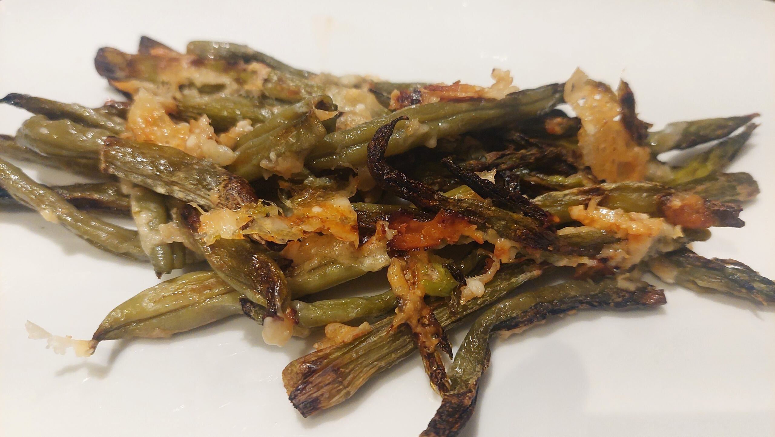 Remove the asparagus (and beans) from oven, sprinkle with the parmesan cheese.